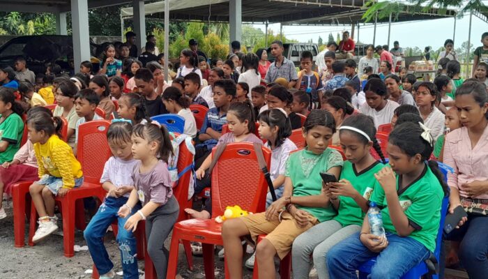 ” Kalau lagi sedih atau kesal sama orang tua, jangan lupa berdoa. Minta kepada Tuhan supaya Tuhan mengampuni kesalahan orang tua kalian. Ini pesan dari Bupati, Bapaknya kalian semja”,kata Bupati ke anak-anak Sekami.