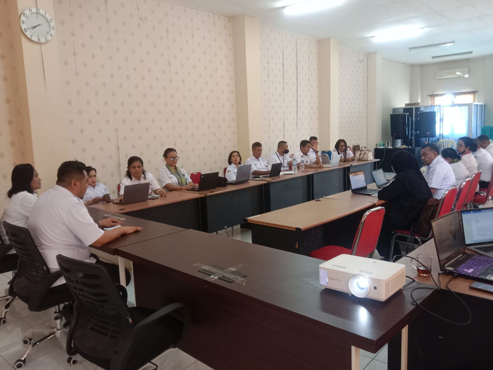 Rapat ini dihadiri oleh perwakilan perangkat daerah yaitu Dinas Kesehatan, Dinas Pengendalian Penduduk dan Keluarga Berencana, Dinas Ketahanan Pangan, Dinas PUPR, Dinas Dukcapil, Dinas Sosial dan Dinas Kominfo serta para operator perangkat daerah.