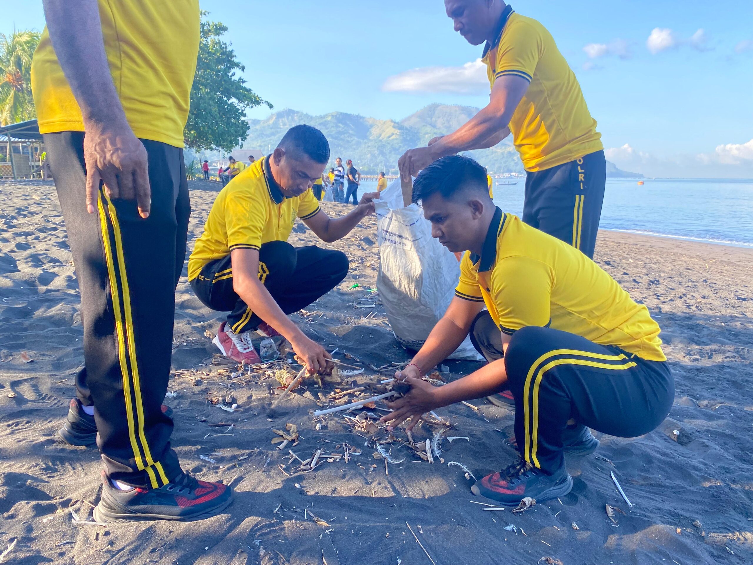 DetikNTT.Com || Ende – Pagi yang cerah di pesisir Pantai Kota Raja Kelurahan Kota Raja Kecamatan Ende Utara tampak berbeda dari biasanya. Gabungan personel Polres Ende bersama pengurus anggota Bhayangkari tidak mengenakan seragam dinas lengkap, melainkan pakaian olahraga lengkap dengan kantong sampah di tangan.